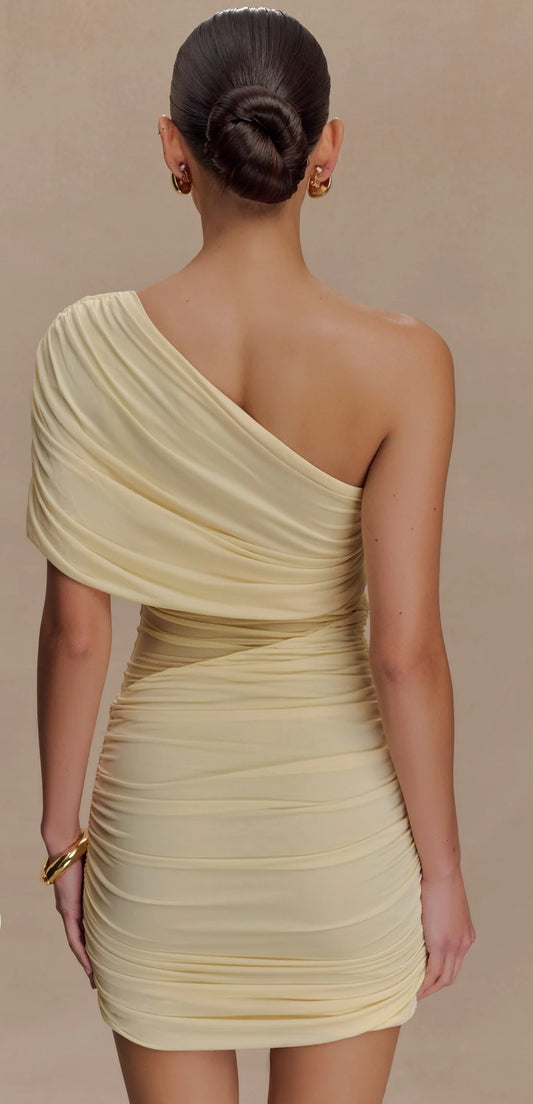 Dallas One Shoulder Mesh Mini Dress Lemon