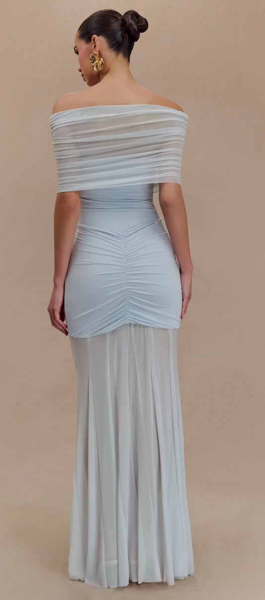 Caspian Slinky Mesh Off Shoulder Maxi Dress