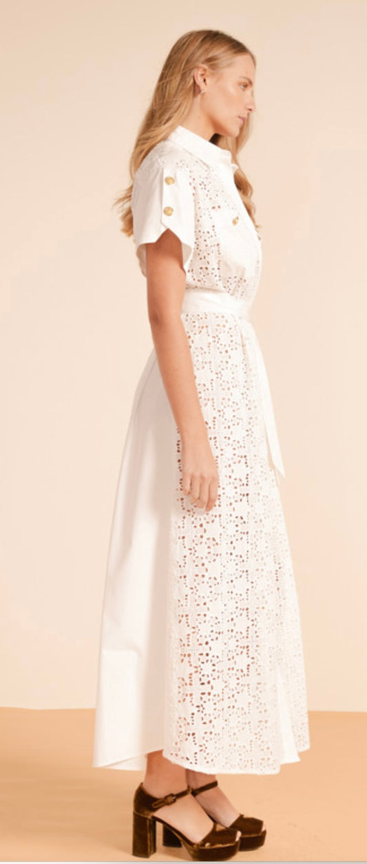 STAR EMBROIDERED SHIRT DRESS IN WHITE