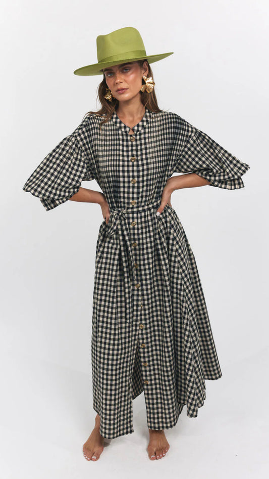 La Bohème Girls - Poppy Maxi Dress - Black Oat Gingham- One Size (6-16)